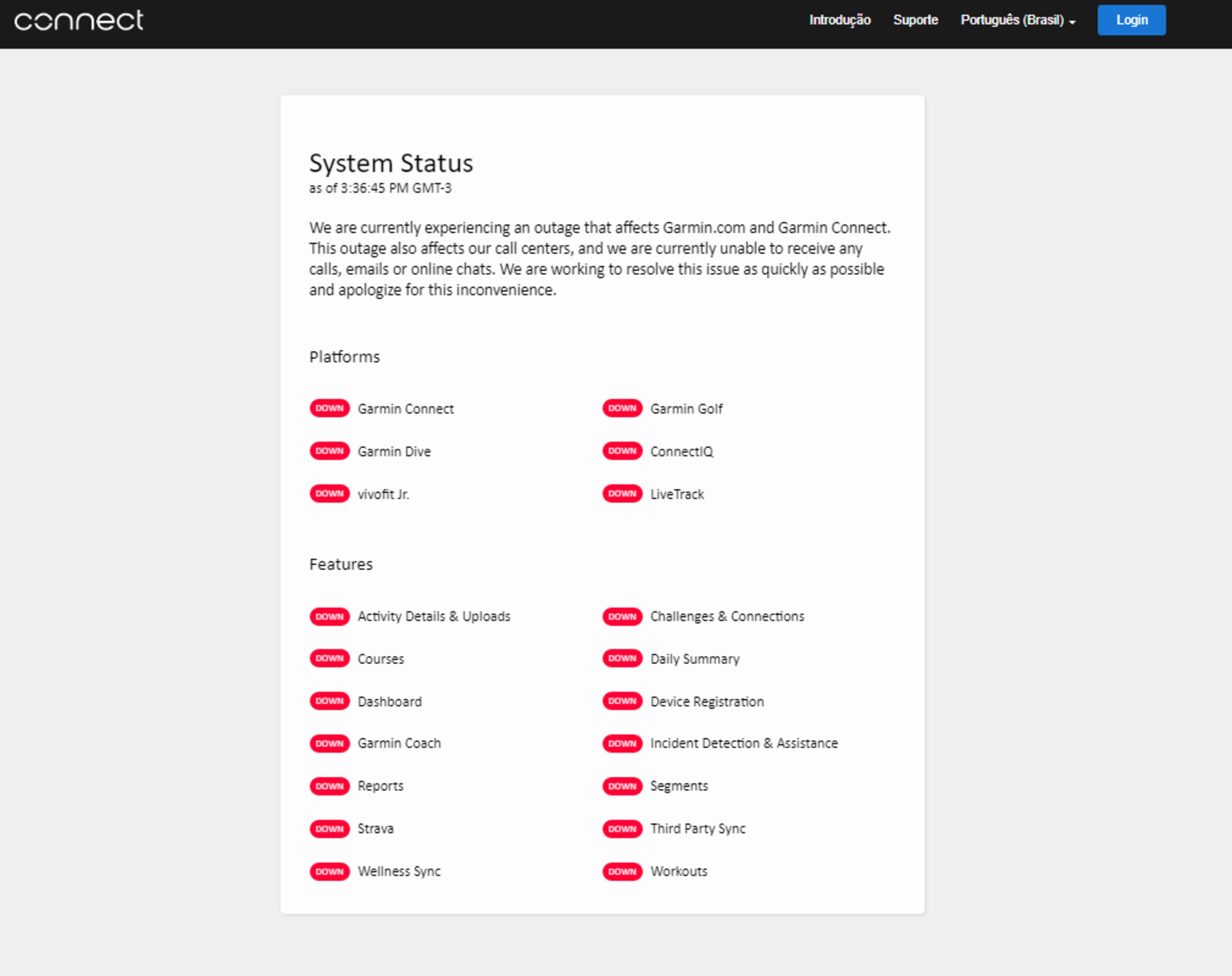 Nesta semana do dia 20 de Julho de 2020, todos os usuários de dispositivos Garmin ao redor do mundo, que utilizam seus serviços de nuvem, como o Garmin Connect, foram surpreendidos com a impossibilidade de sincronização de dados e atualização de dispositivos. Ao verificar na página de status de serviços da Garmin observamos que todos os serviços estavam down. Mas o que será que aconteceu?