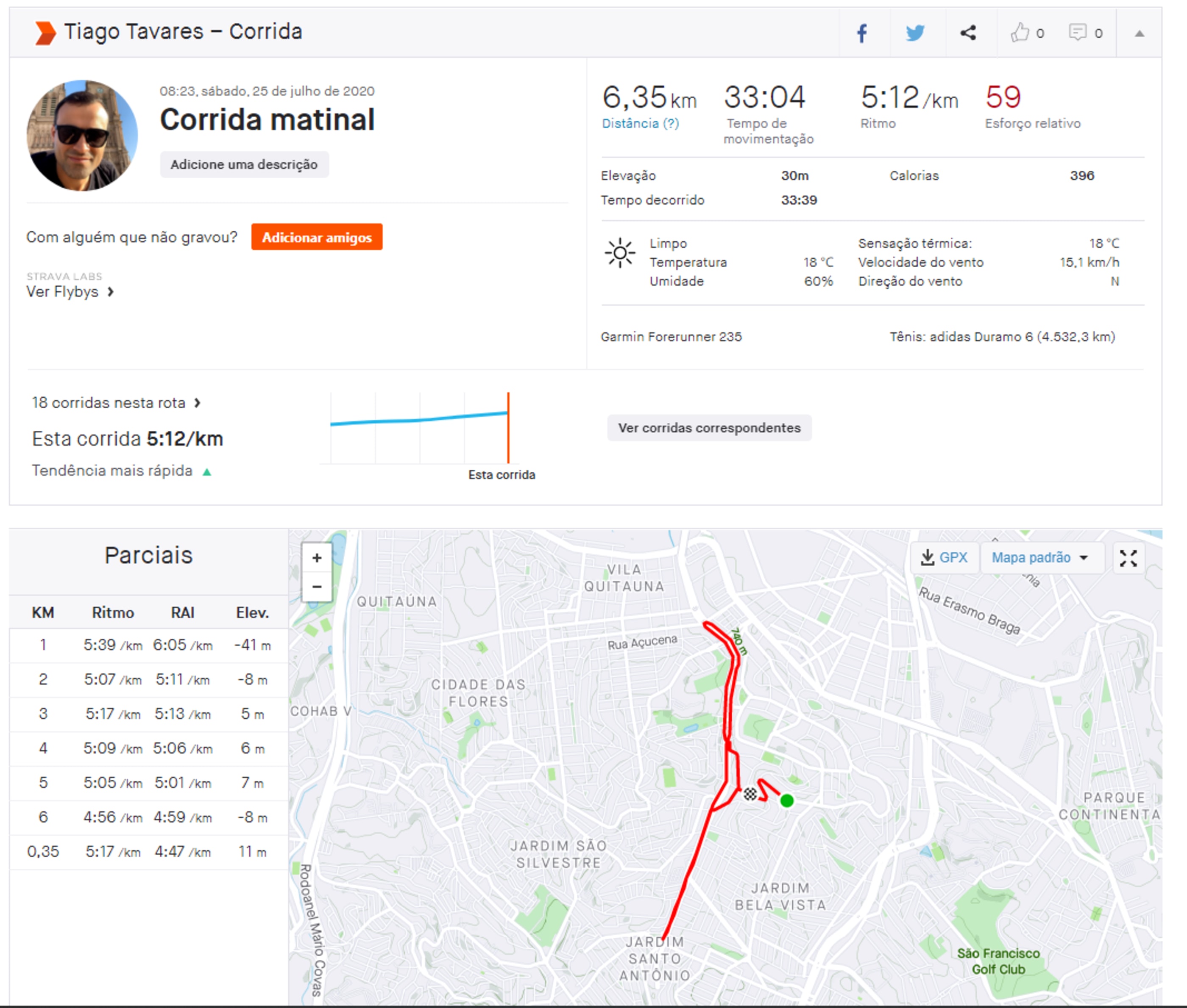 Pronto! Seus treinos estão disponíveis no Strava para visualizão completa dos dados do treino!