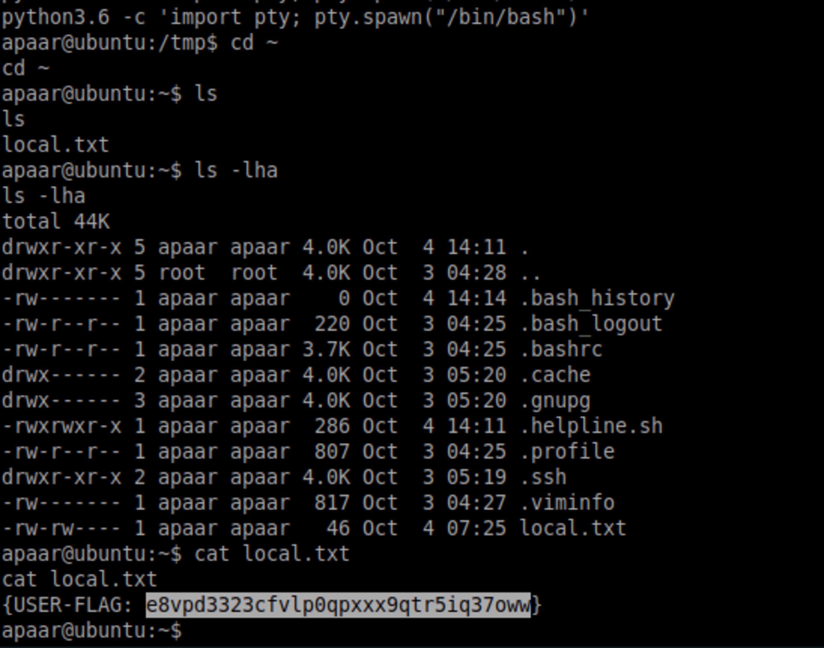 python3.6 -c 'import pty; pty.spawn("/bin/bash")'