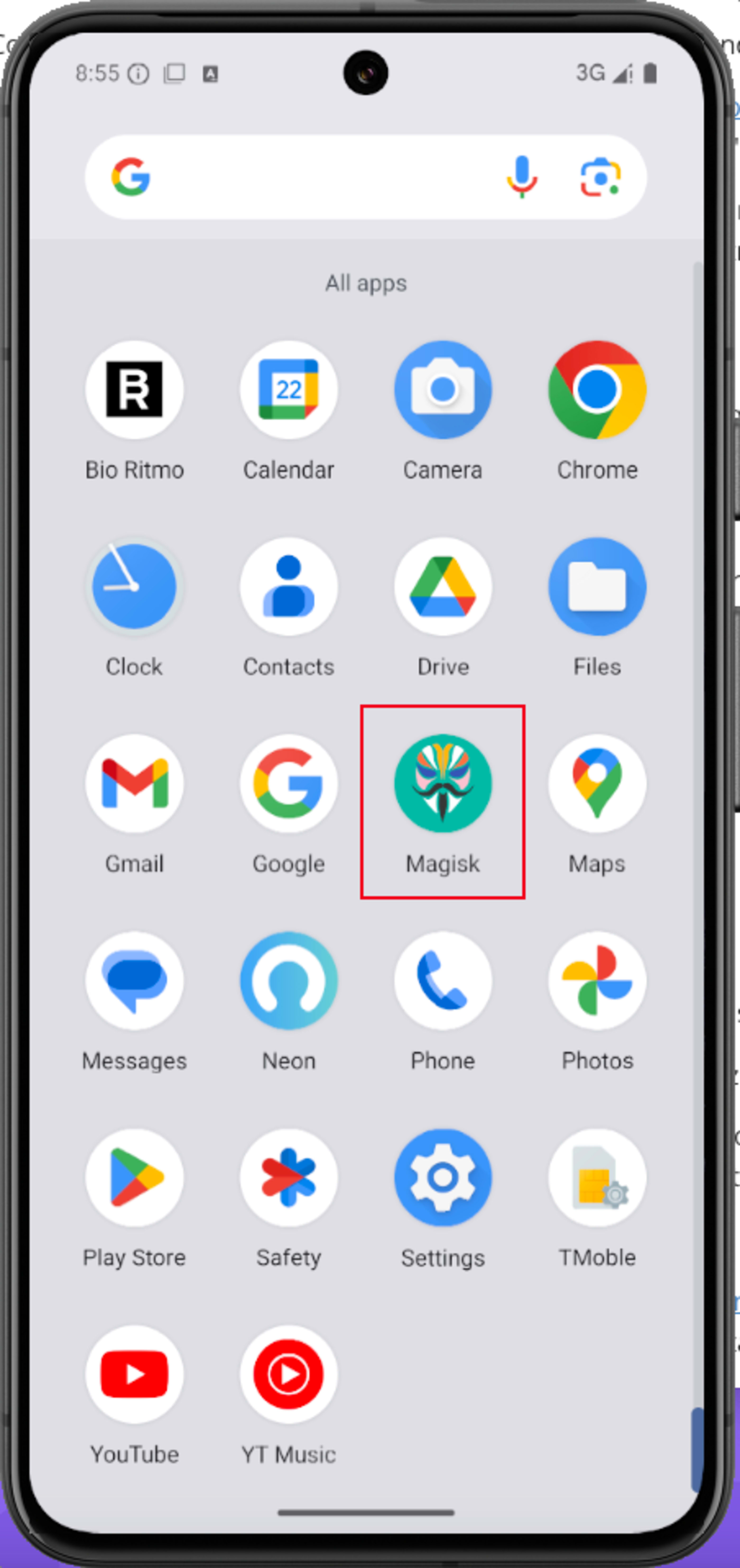 O próximo passo será o que fará com que o certificado CA do Burp e ZAProxy instalados no armazenamento Trusted User, seja movidos para o armazenamento System. É aqui que o módulo Magisk do NCC Group entrará em ação. Para acessar a estrutura Magisk, precisamos simplesmente clicar em seu ícone disponível entre os aplicativos.