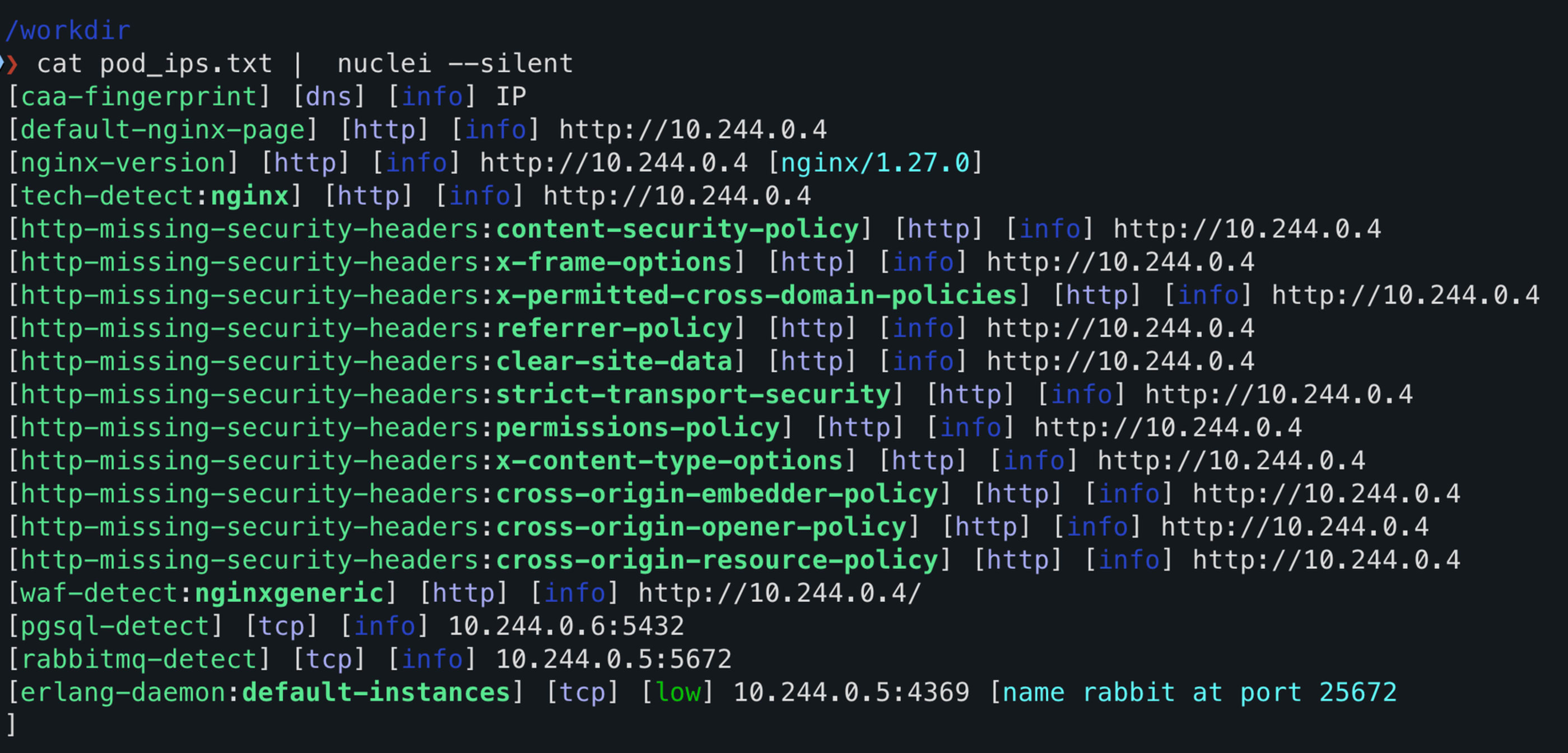 cat pod_ips.txt | nuclei --silent