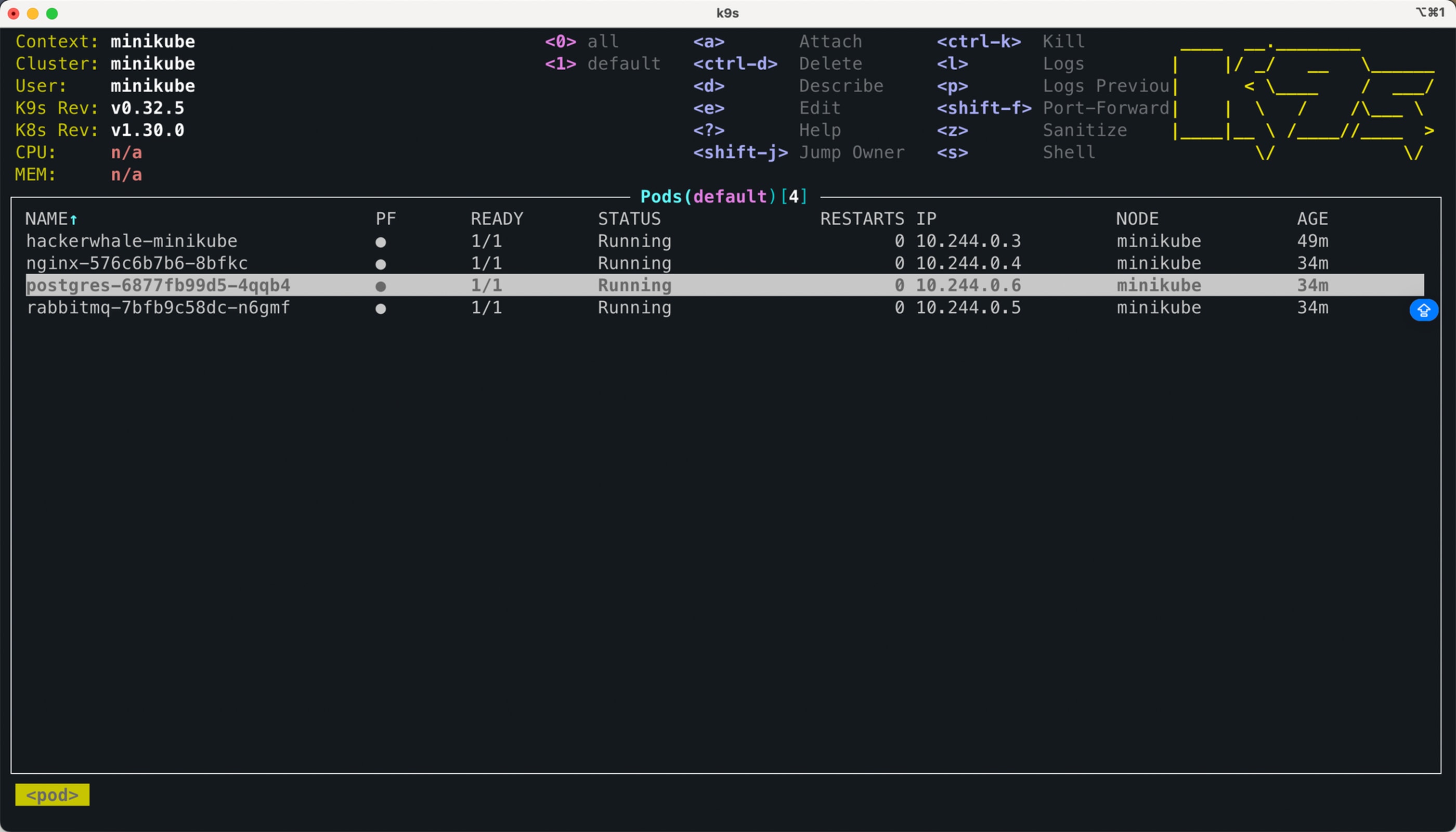 Agora podemos aplicar nosso hackerwhale-minikube.yaml para gerar o nosso pod.