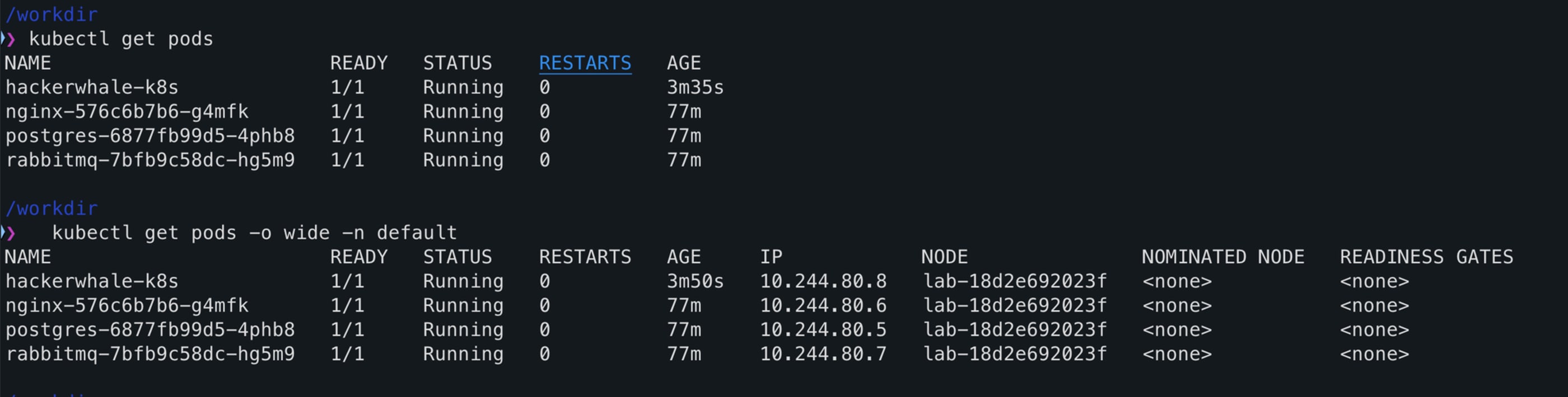 $ kubectl get pods -o wide