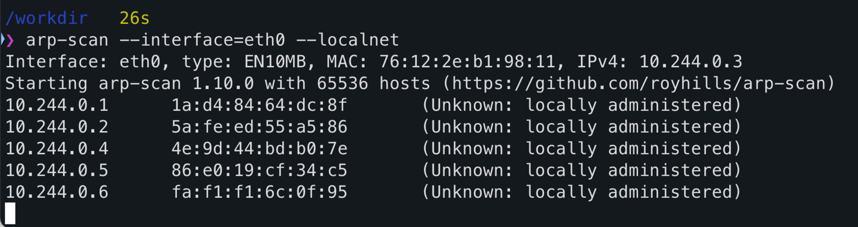 arp-scan --interface=eth0 --localnet