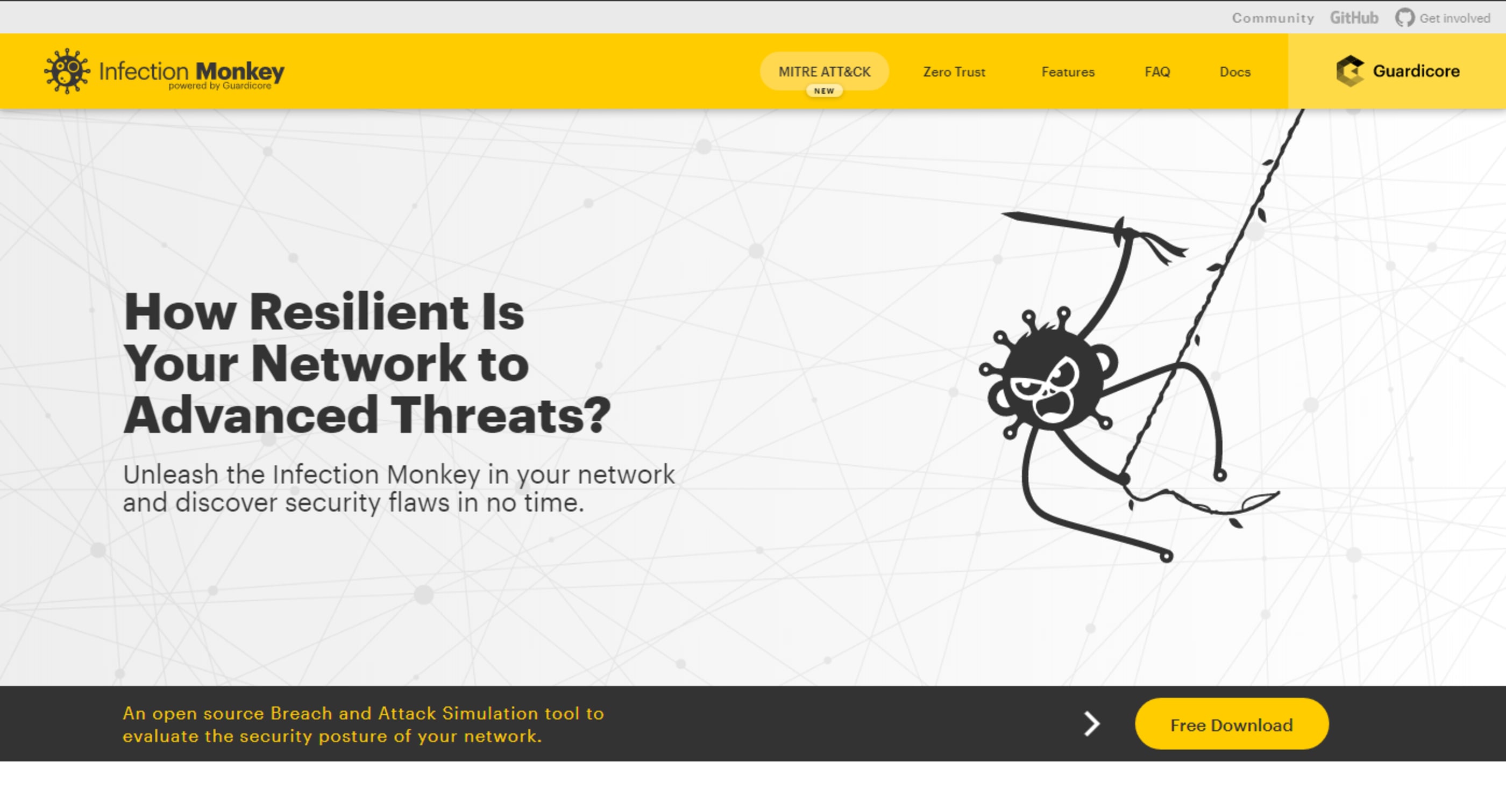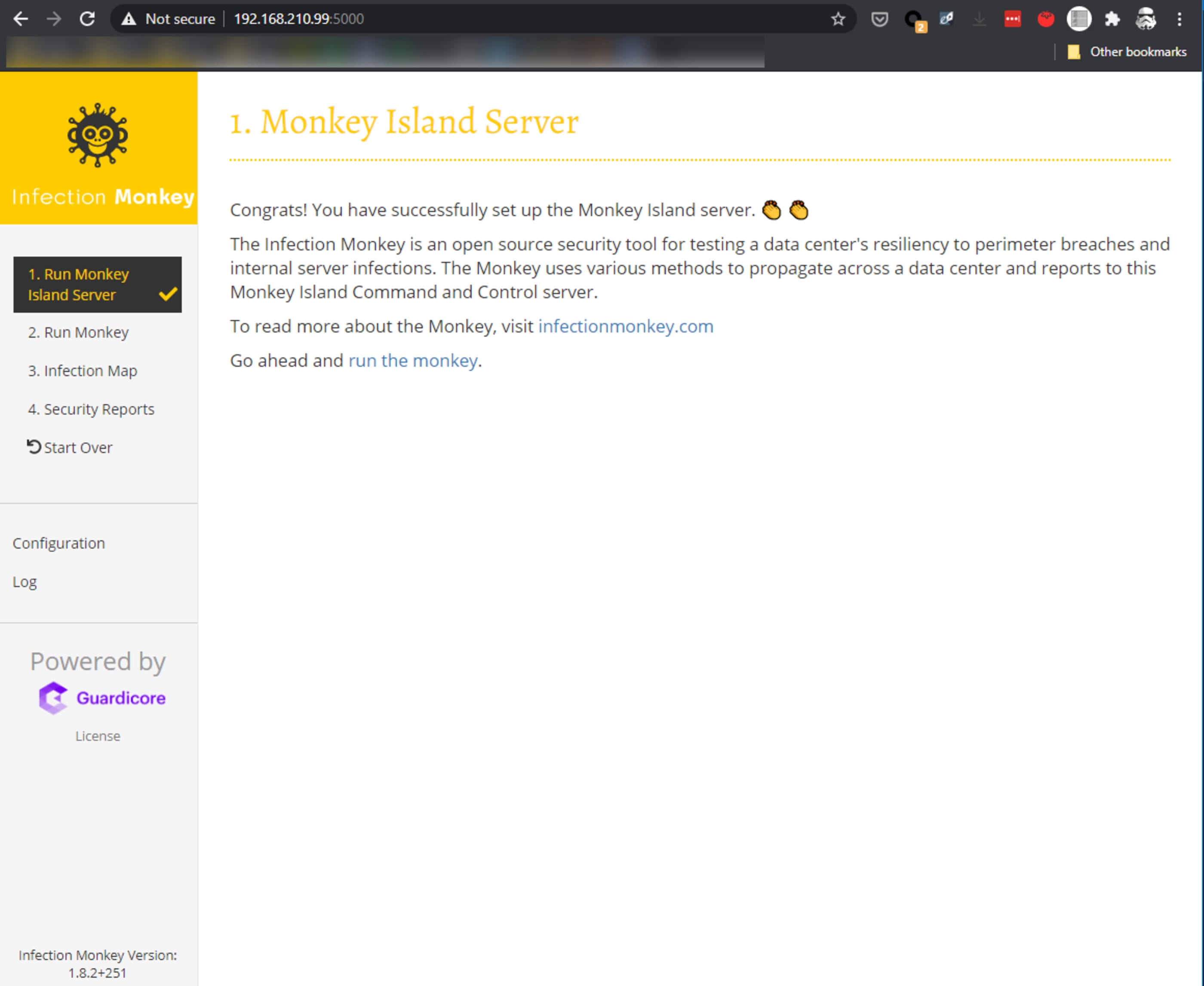 Tudo o que é necessário para baixar e configurar o Infection Monkey se encontra em https://www.guardicore.com/infectionmonkey/.