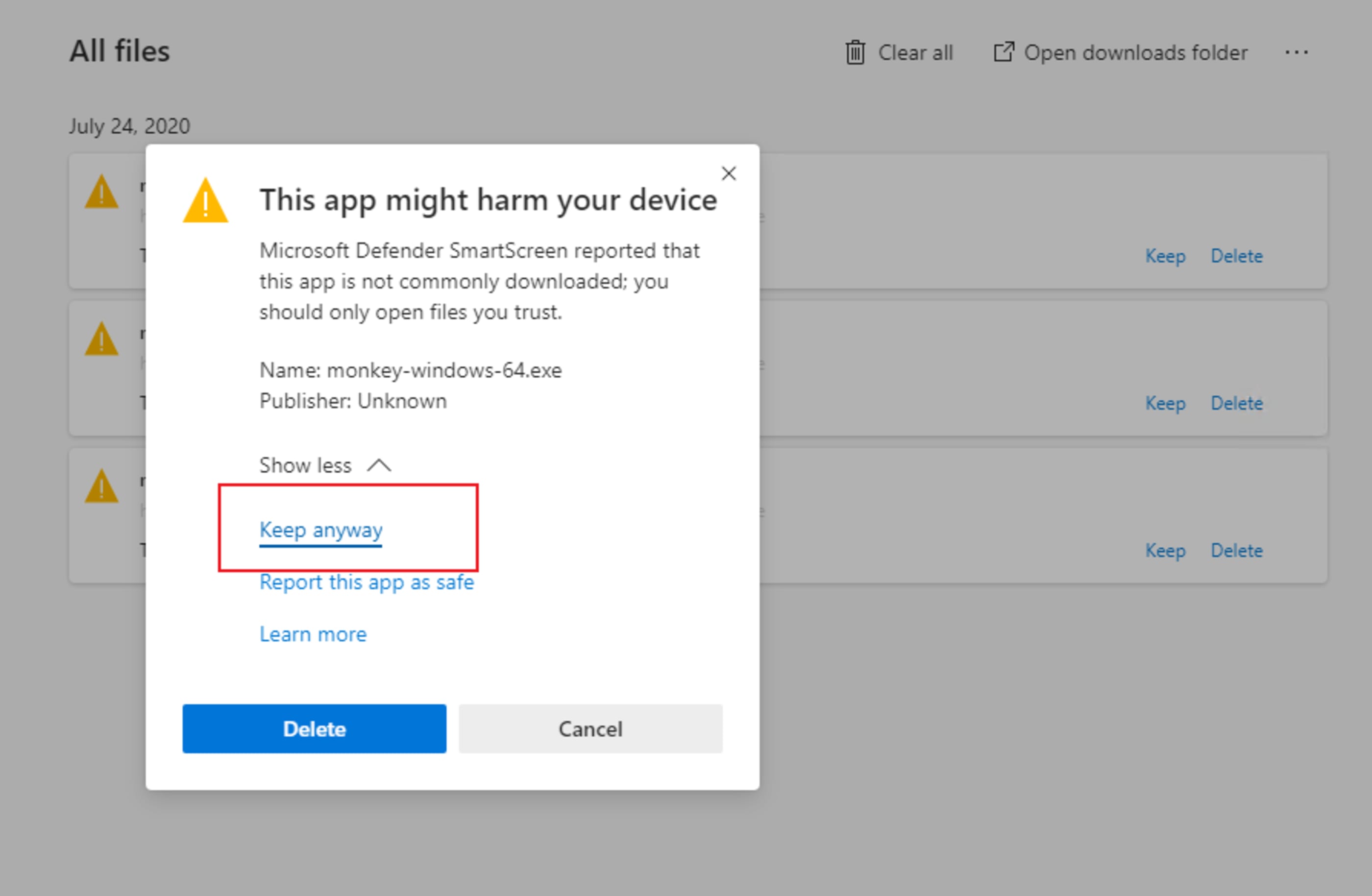 Devido a natureza do software o Windows Defender imediatamente bloqueará o download, você deverá autorizar.