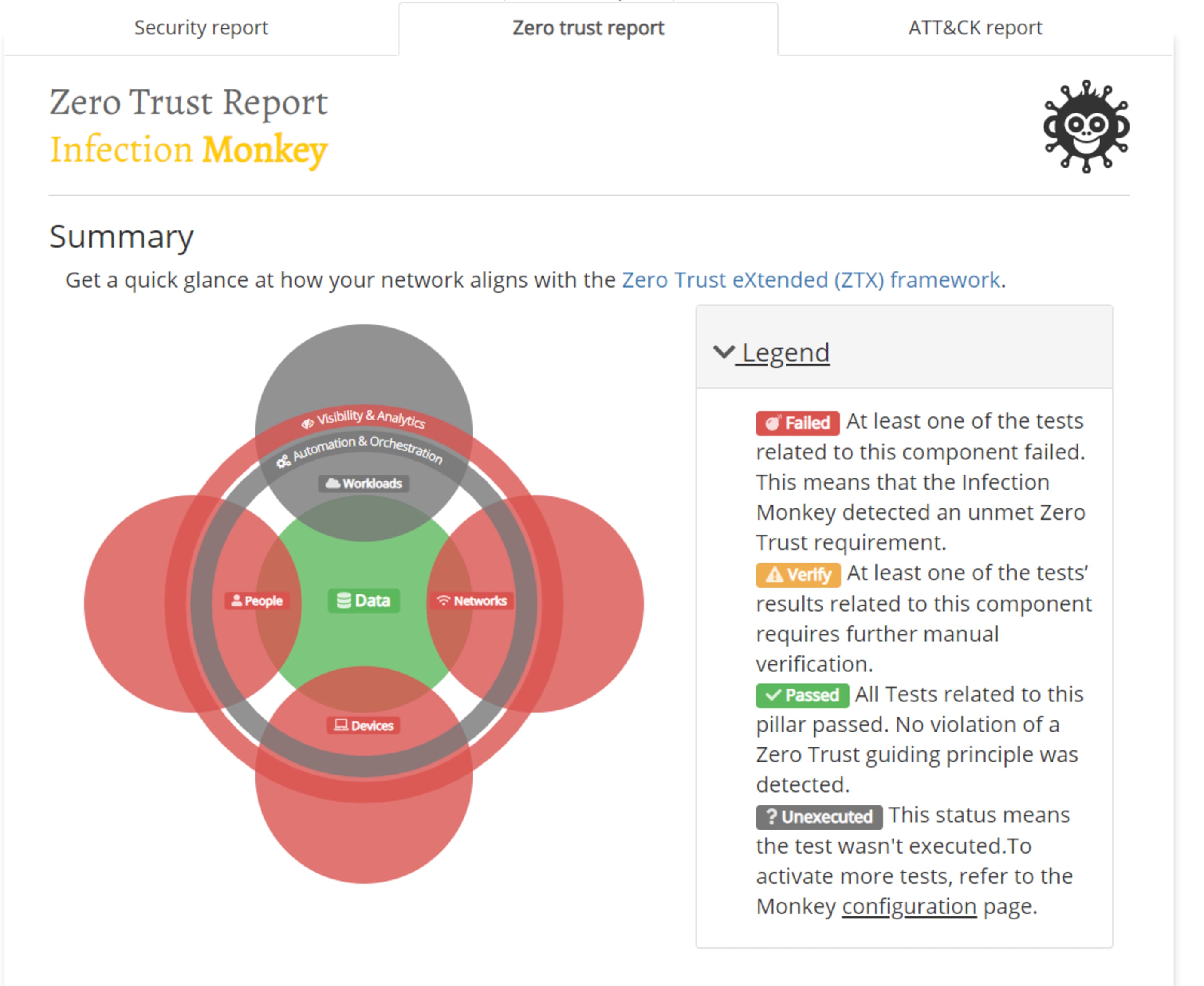 Ao realizar o deploy de uma instância do Infection Monkey, ele automaticamente realizará um discovery de todo o ambiente que ele possa alcançar e avaliará os riscos de segurança com testes para diferentes cenários, como roubo de credenciais, comprometimento de desktops e domínio, além de outras falhas de segurança. É sugerido que realize esta avaliação periodicamente, assim é possível descobrir falhas após alterações na rede.