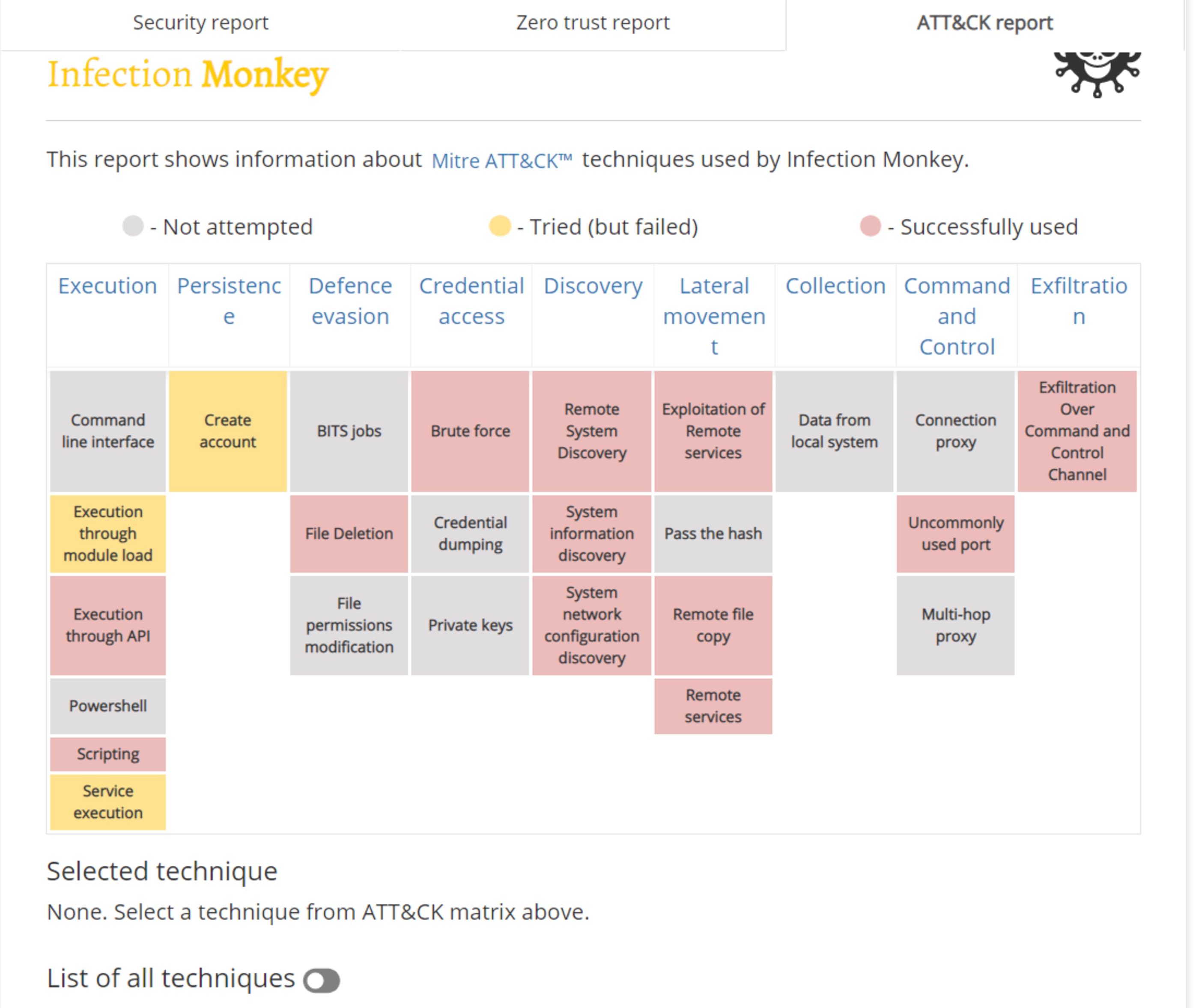 O Infection Monkey lhe fornecerá os seguinte relatórios. Clique nos links para baixar um exemplo em PDF.