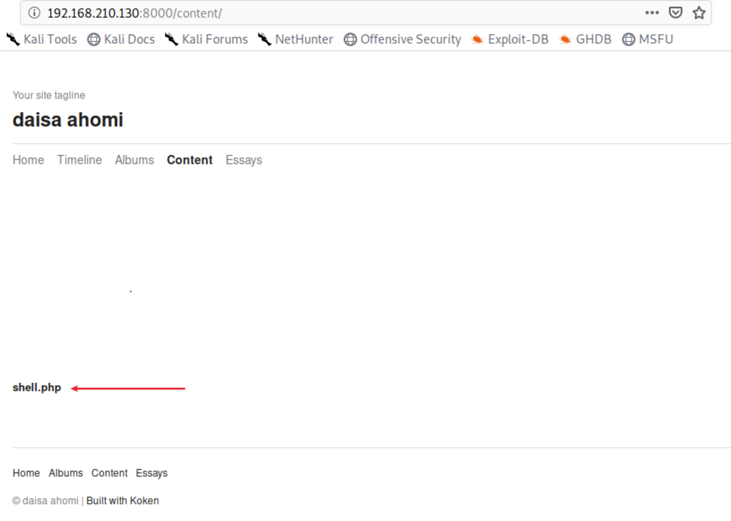 Navigating on pages, at Content specifically, we found something interesting. Either the author forgot it uploaded or is trying to hacking us receiving shells… 🤔